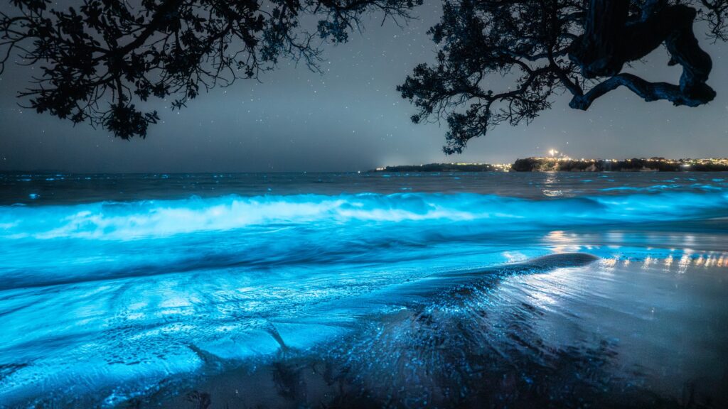 ઑકલેન્ડના ઉત્તર ભાગમાં આવેલા Stanmore Bay બીચ પર શુક્રવારે રાત્રે જોવા મળેલા બાયોલ્યુમિનેસન્સ (પ્રકાશ ઉત્સર્જન)ના અદ્ભુત નજારાથી ત્યાં હાજર લોકો આશ્ચર્યચકિત થઈ ગયા હતા. ફોટોગ્રાફર મેથ્યુ ડેવિસનએ આ દ્રશ્યોને કેમેરામાં કેદ કર્યા અને તેને તેમના દસ વર્ષના અનુભવનો “સર્વશ્રેષ્ઠ શો” ગણાવ્યો.